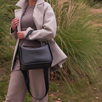 The handle is the perfect length to carry the bag in hand or on the forearm, and it can be easily detached. The wide strap, which is also detachable, is carefully designed and can be adjusted so that the bag can be worn on the shoulder or crossbody.